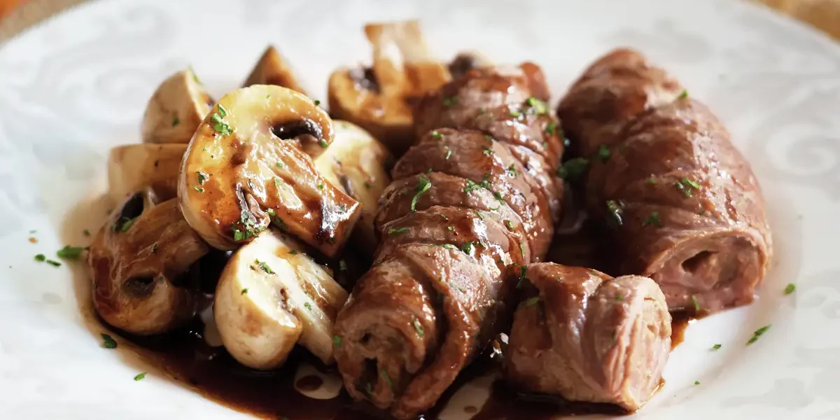 Sirve los rollitos de ternera acompañados de los champiñones salteados y baña con la salsita de vino dulce. Espolvorea con perejil picado y ¡listo para disfrutar!